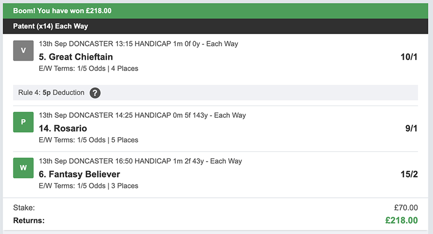 Profit/Loss +£148.00 14th September No Bets on Sundays 15th September