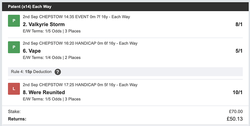 Profit/Loss +£641.10 7th September No Bets on Sundays 8th September